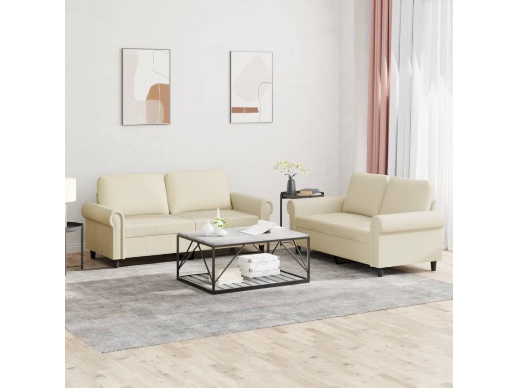2dílná sedací souprava s poduškami krémová umělá kůže 3202151