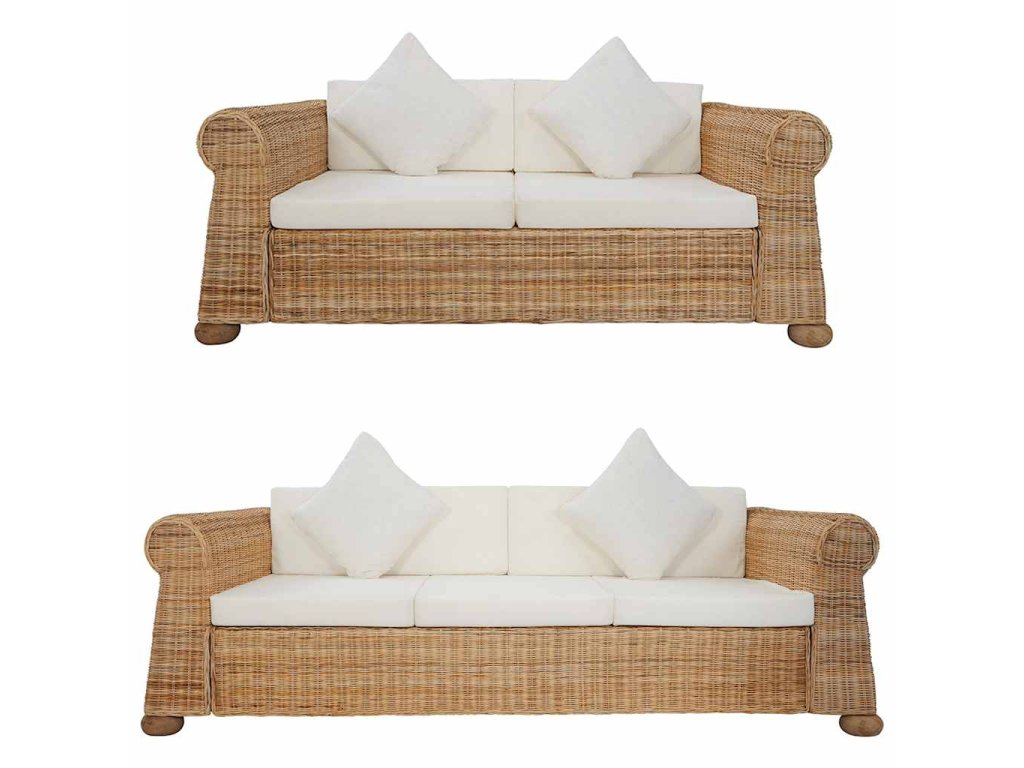 2dílná sedací souprava s poduškami přírodní ratan 278602