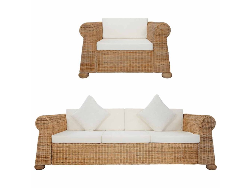 Vzhledem k originálnímu ratanovému materiálu se sestava snadno čistí, je mimořádně odolná a vhodná pro každodenní použití. Má robustní dřevěný rám, který je velmi odolný a stabilní. Silné podušky na sedák a opěradlo jsou mimořádně pohodlné a mají snímatelné potahy, takže se dají snadno prát. Široké područky vám navíc zajistí pohodlí při sezení.