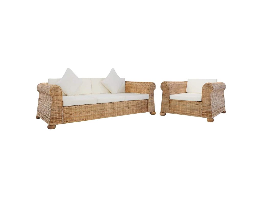 2dílná sedací souprava s poduškami přírodní ratan 278604