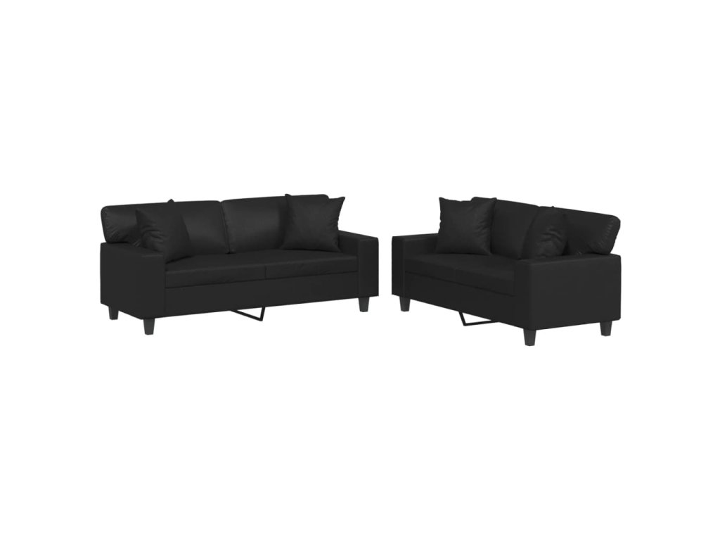 2dílná sedací souprava s polštáři černá umělá kůže 3201924