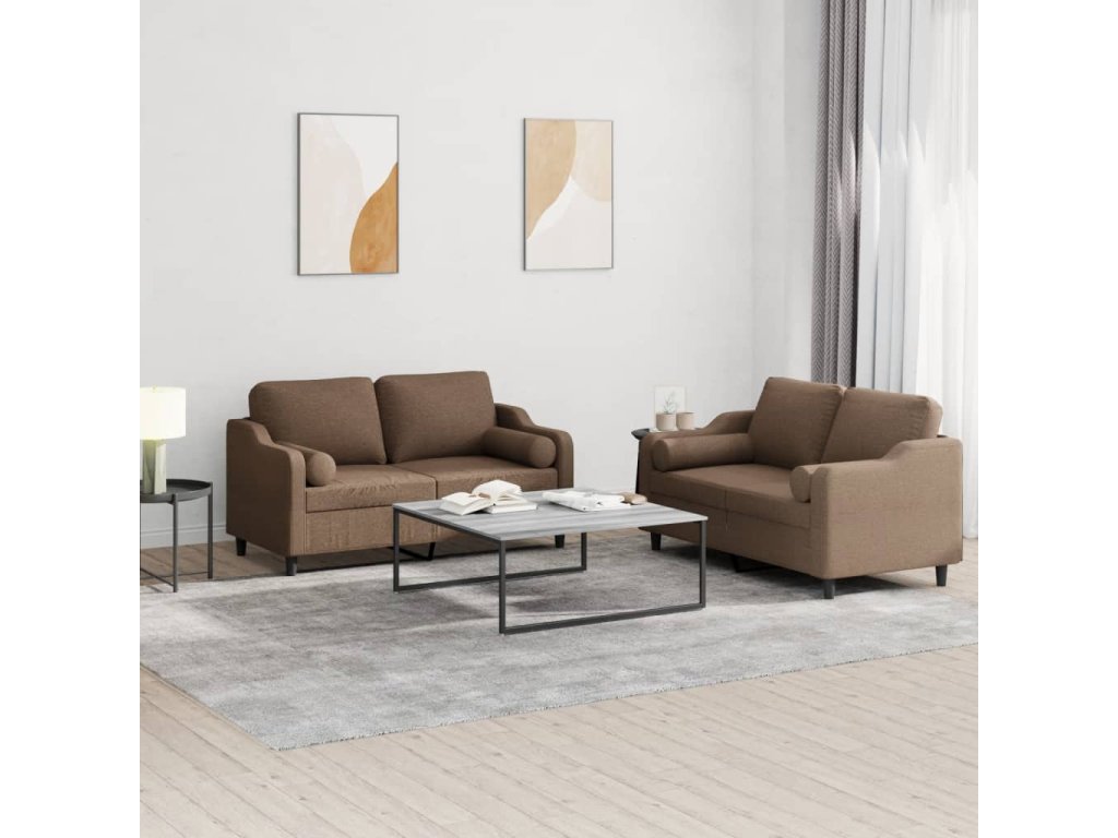 2dílná sedací souprava s polštáři hnědá textil 3201821