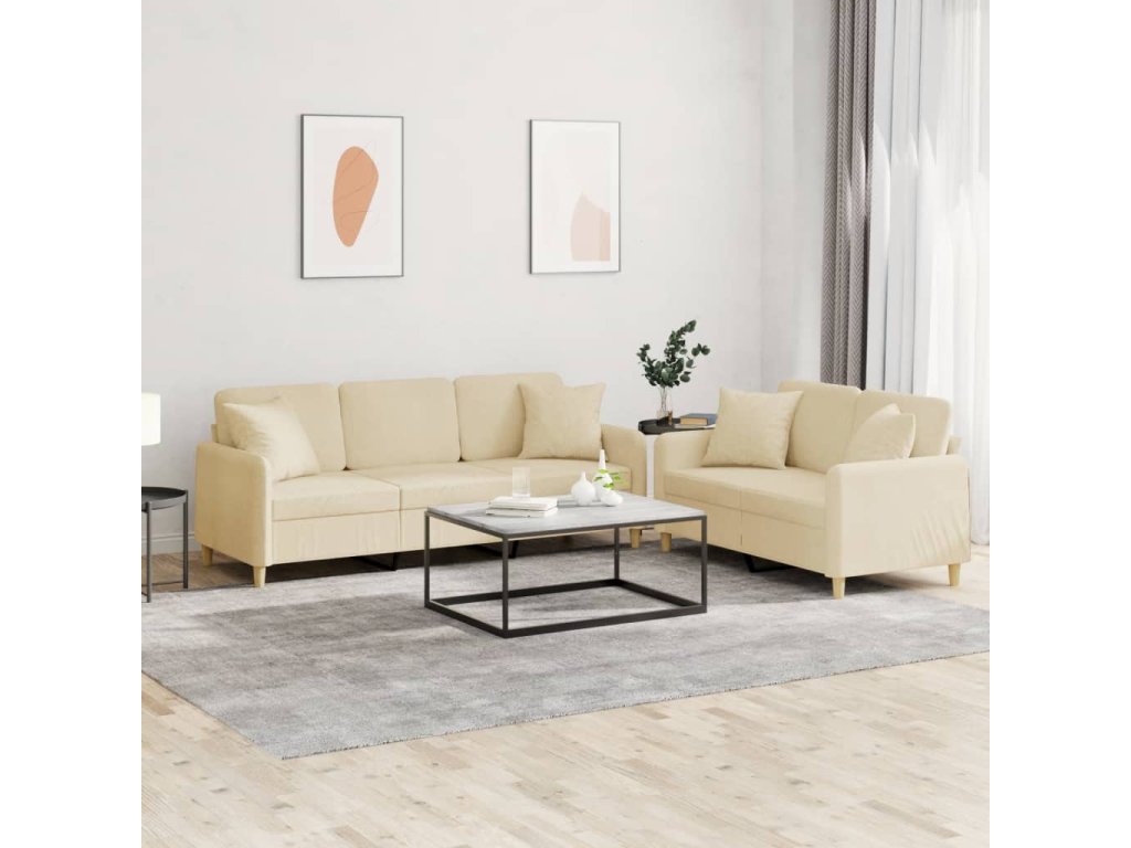 2dílná sedací souprava s polštáři krémová textil 3202136