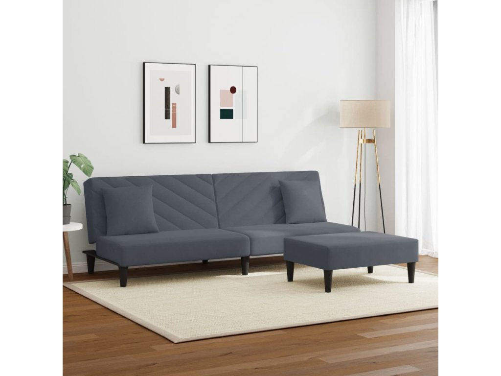 2dílná sedací souprava s polštáři tmavě šedá samet 3216263