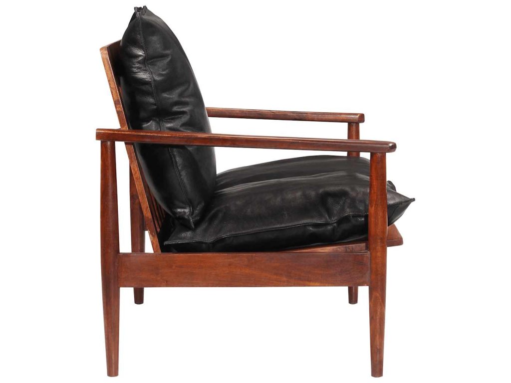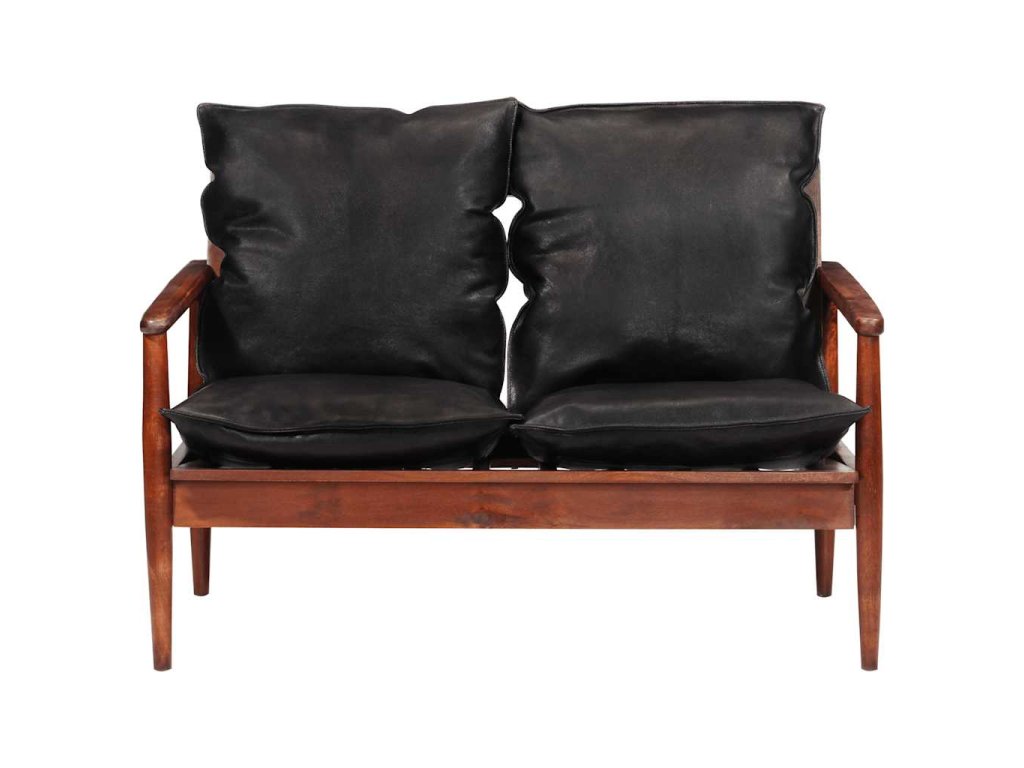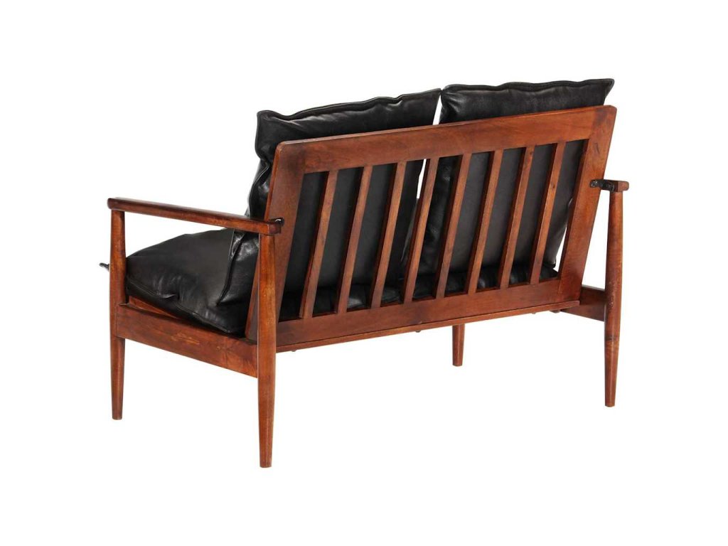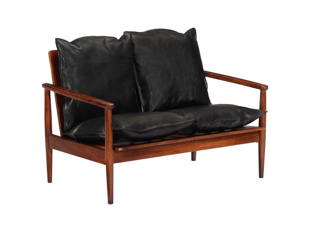 2místná pohovka černá pravá kůže a masivní akáciové dřevo 340924