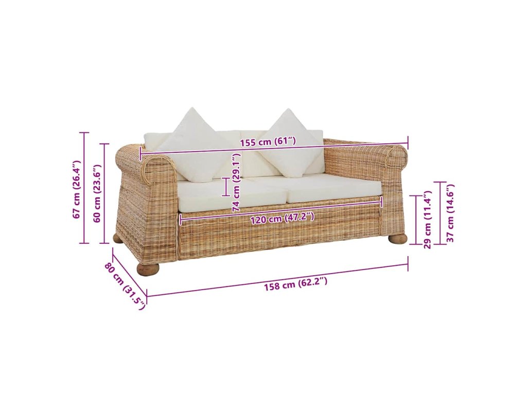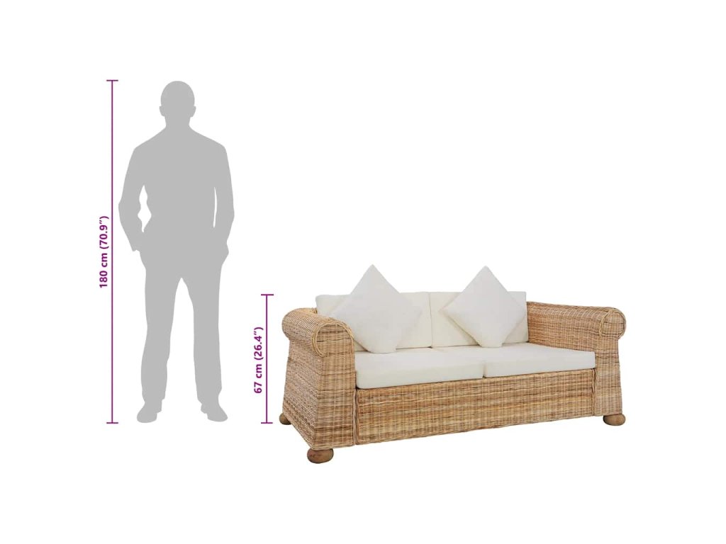 Vzhledem k originálnímu ratanovému materiálu se pohovka snadno čistí, je mimořádně odolná a vhodná pro každodenní použití. Má robustní dřevěný rám, který je velmi odolný a stabilní. Silné podušky na sedák a opěradlo a polštáře jsou mimořádně pohodlné a mají snímatelné potahy, takže se dají snadno prát. Široké područky vám navíc zajistí pohodlí při sezení.
