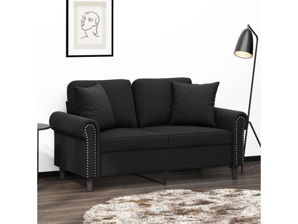 2místná pohovka s polštáři černá 120 cm samet 3200940