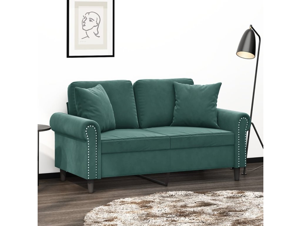 2místná pohovka s polštáři tmavě zelená 120 cm samet 3200937