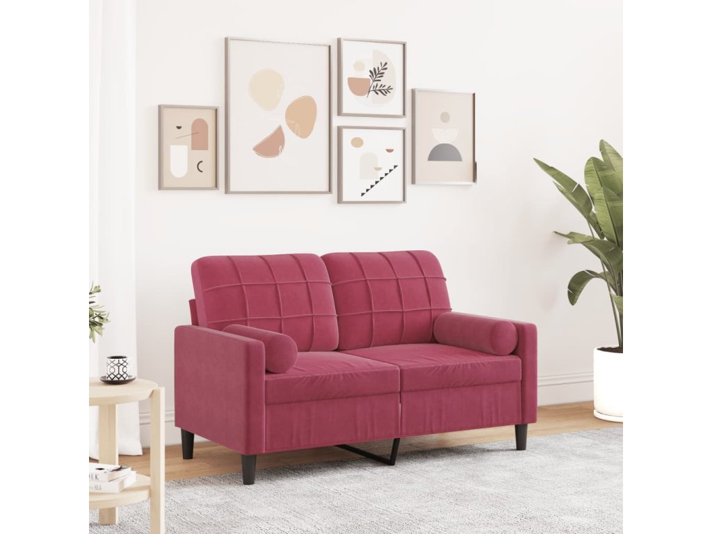 2místná pohovka s polštáři vínová 120 cm samet 3278213