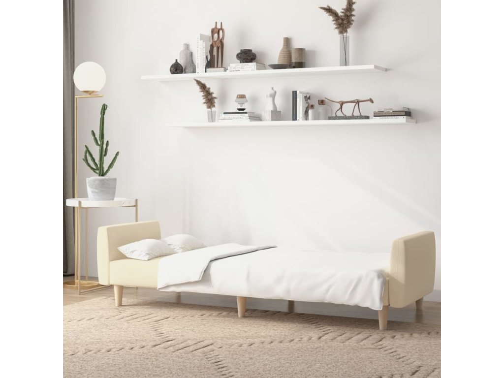 2místná rozkládací pohovka krémová textil 375787