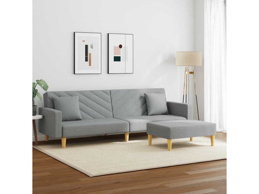 2místná rozkládací pohovka polštáře podnožka světle šedá textil 3216258