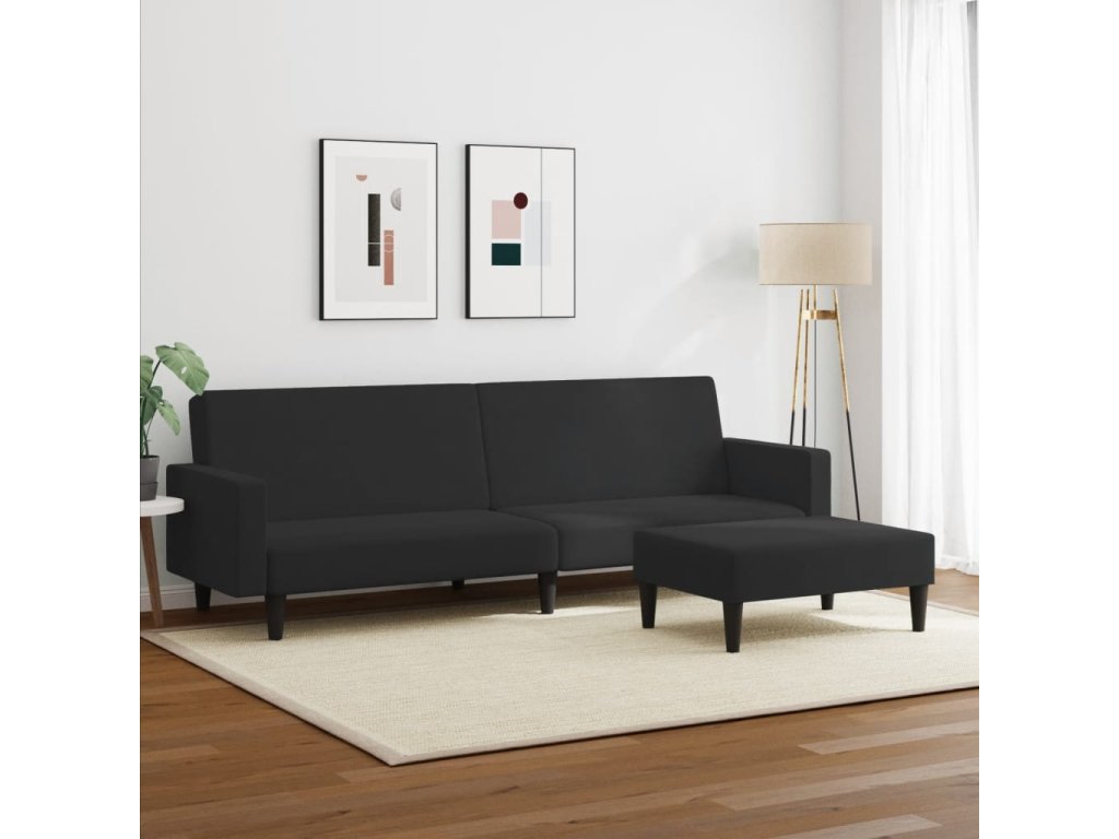2místná rozkládací pohovka s podnožkou černá samet 3216239