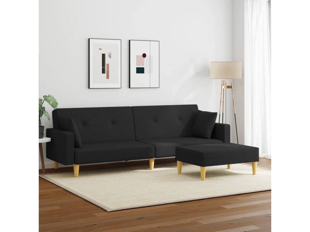 2místná rozkládací pohovka s podnožkou černá textil 3216242