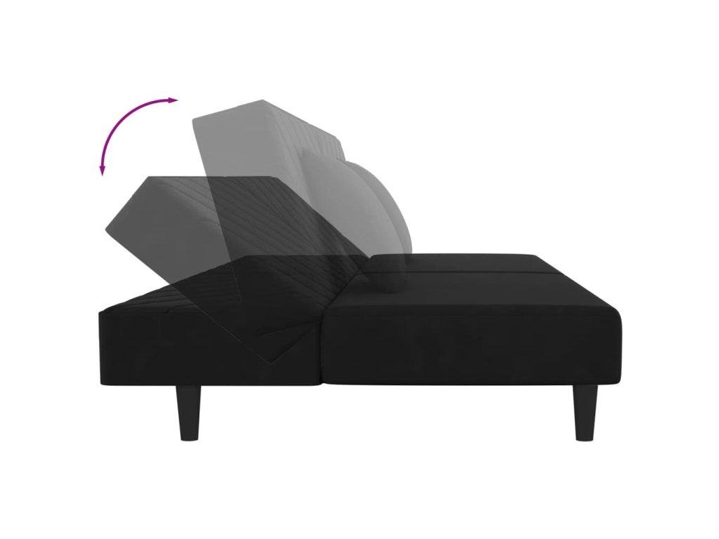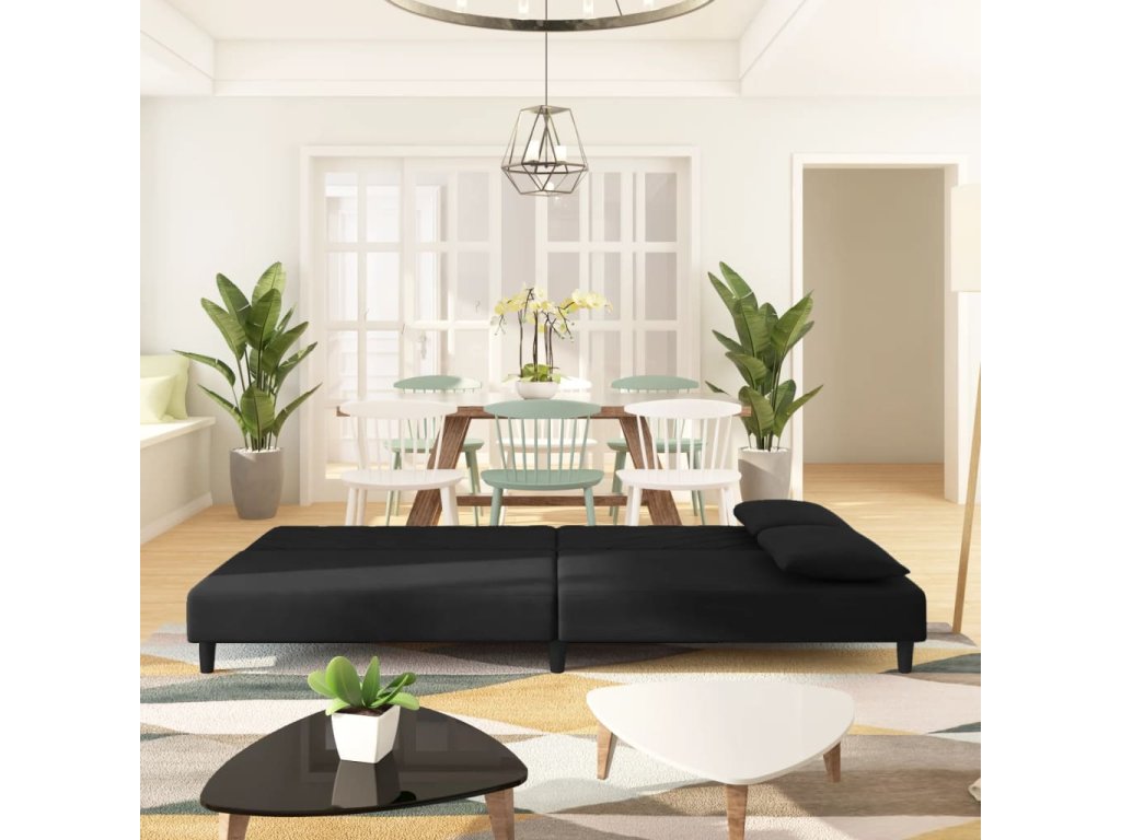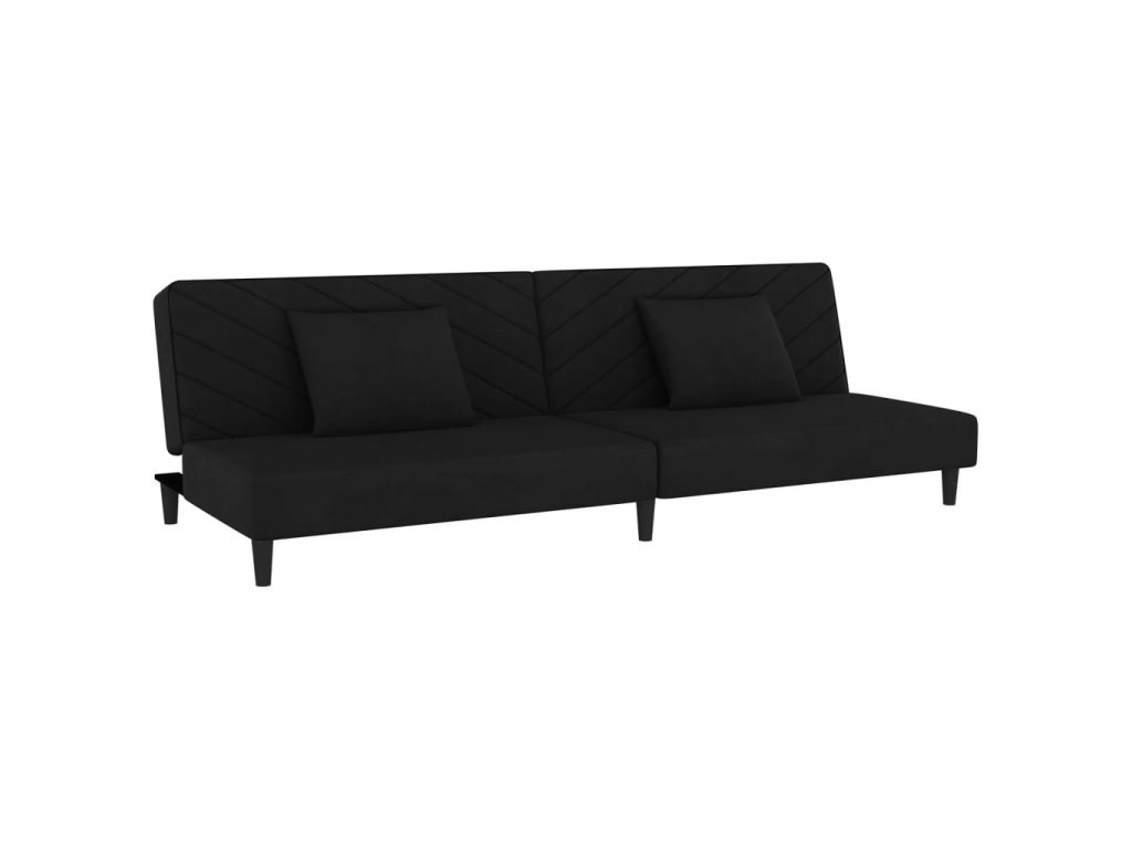 2místná rozkládací pohovka se 2 polštáři černá samet 375915