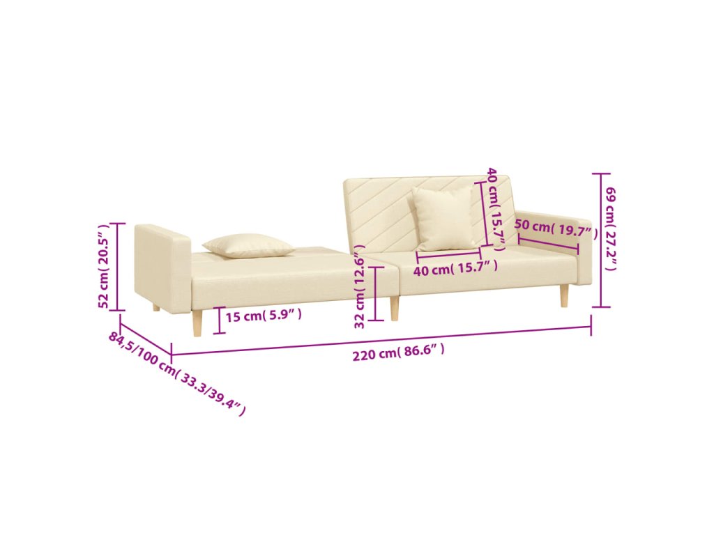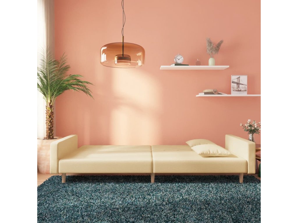 2místná rozkládací pohovka se 2 polštáři krémová textil 375902