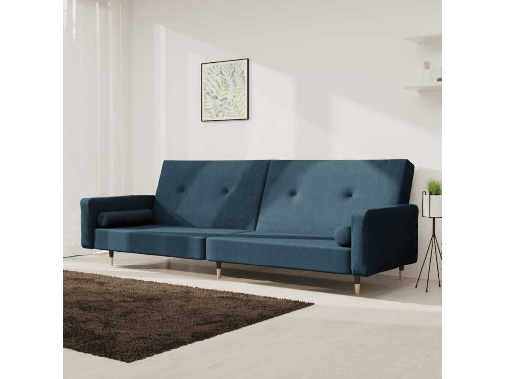 2místná rozkládací pohovka se 2 polštáři modrá samet 375748