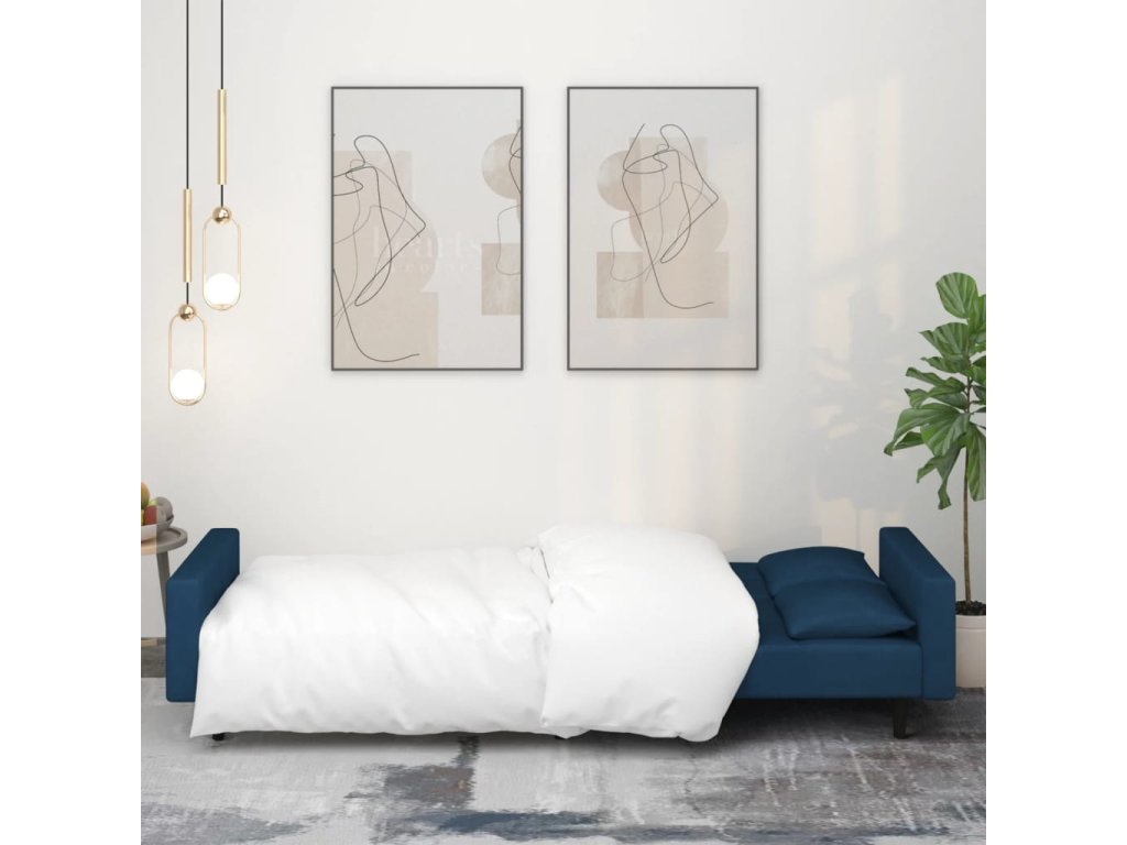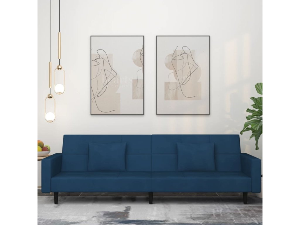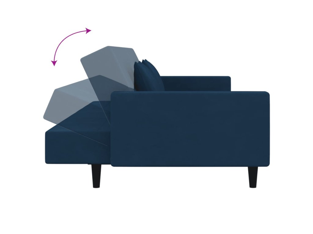 2místná rozkládací pohovka se 2 polštáři modrá samet 375815