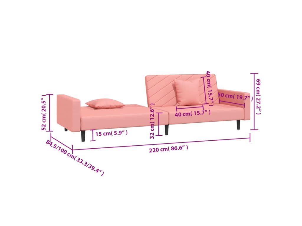 2místná rozkládací pohovka se 2 polštáři růžová samet 375921