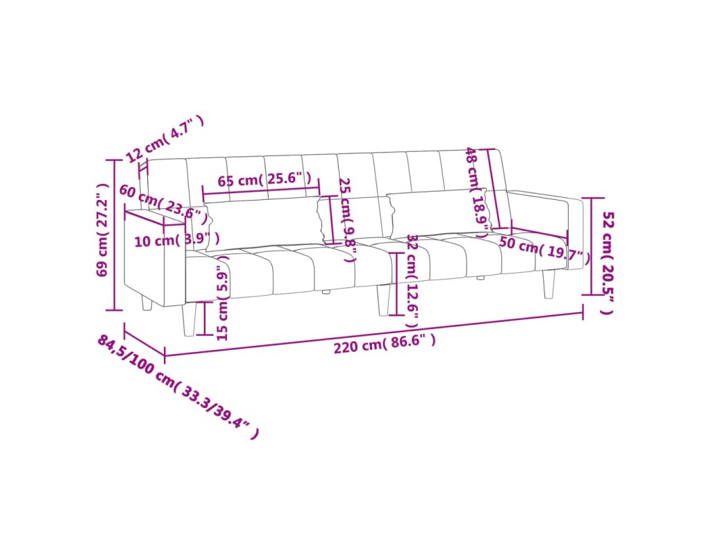 - Celkové rozměry: 220 x 84,5 x 69 cm (D x Š x V)