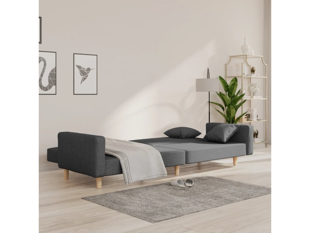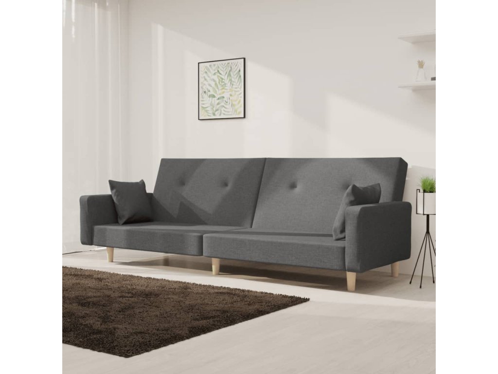 2místná rozkládací pohovka se 2 polštáři světle šedá textil 375741