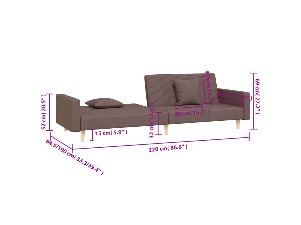 2místná rozkládací pohovka se 2 polštáři taupe textil 375908
