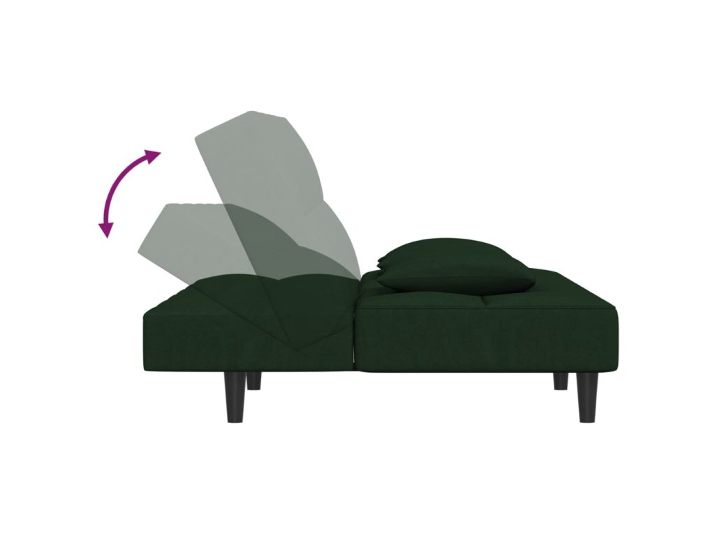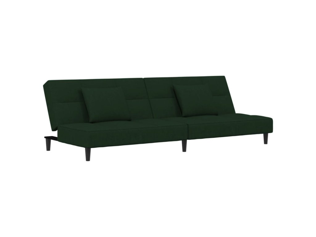 2místná rozkládací pohovka se 2 polštáři tmavě zelená samet 375809