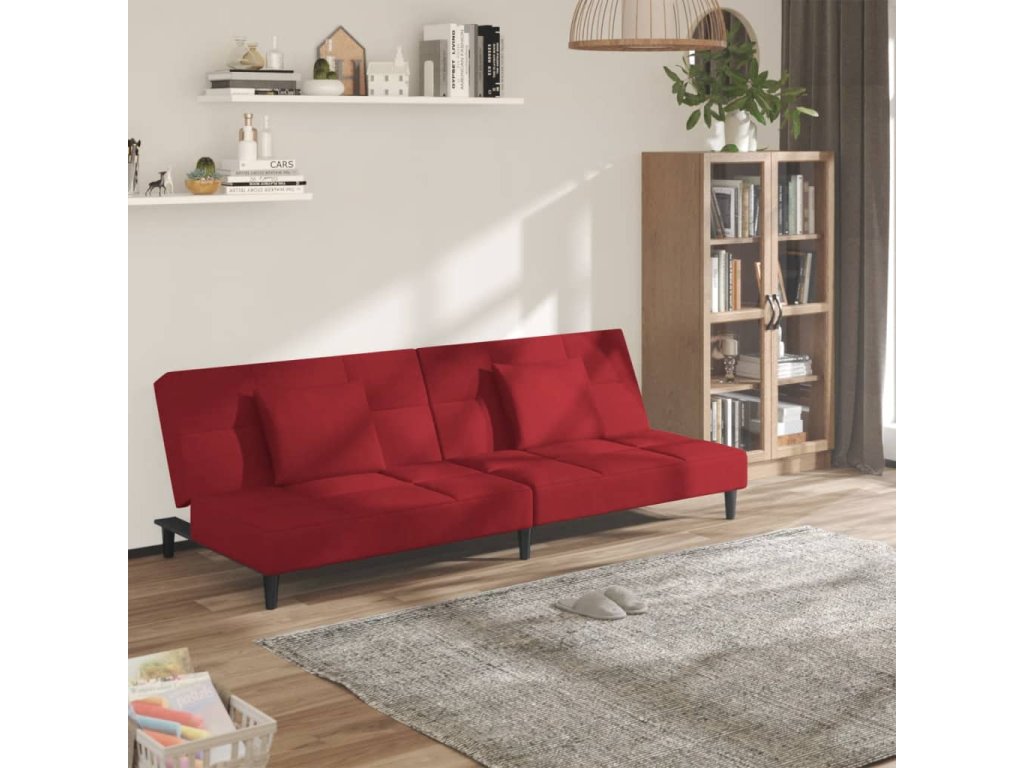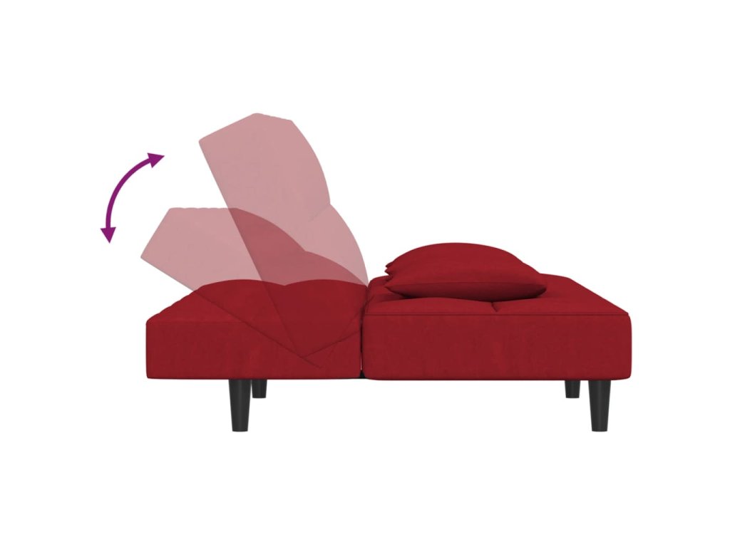 2místná rozkládací pohovka se 2 polštáři vínová samet 375811