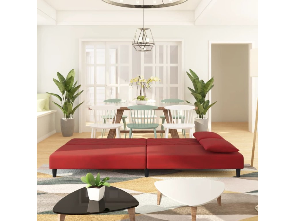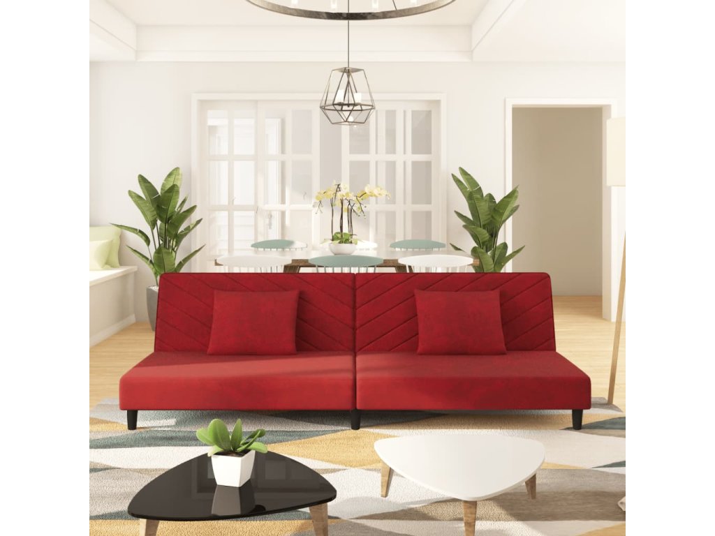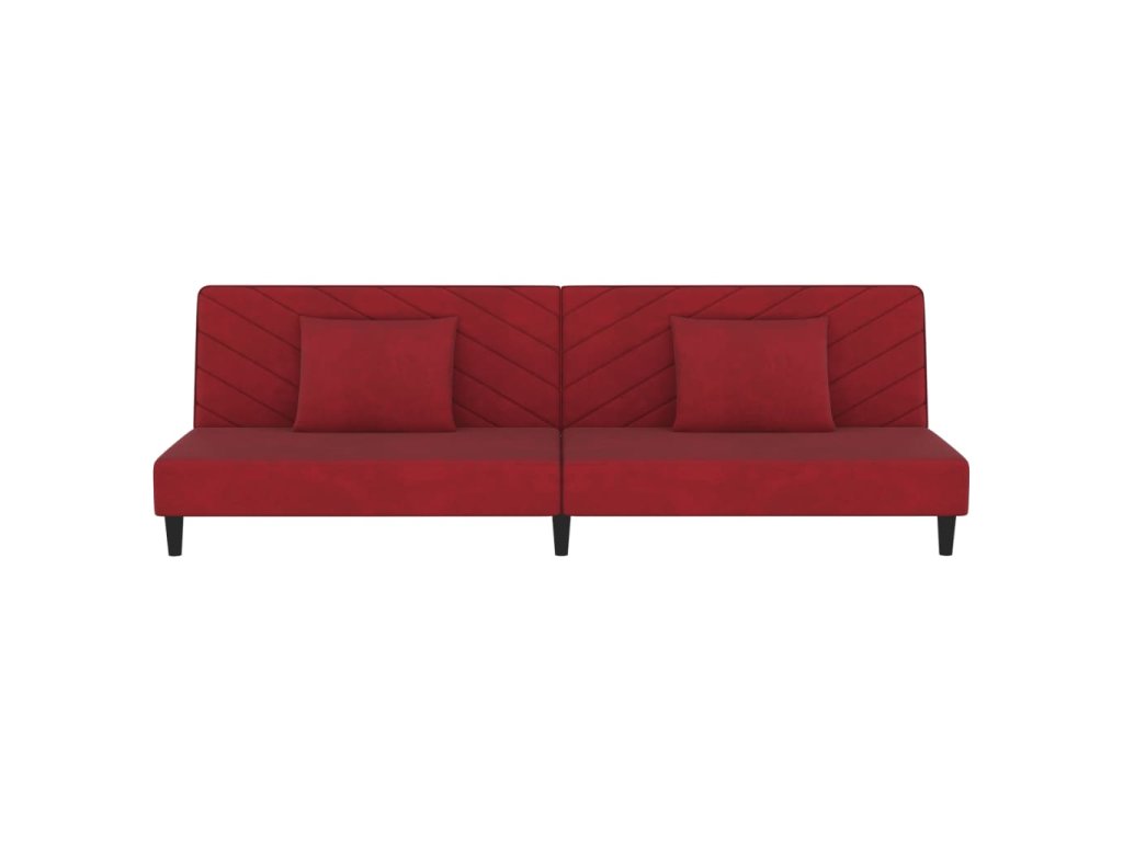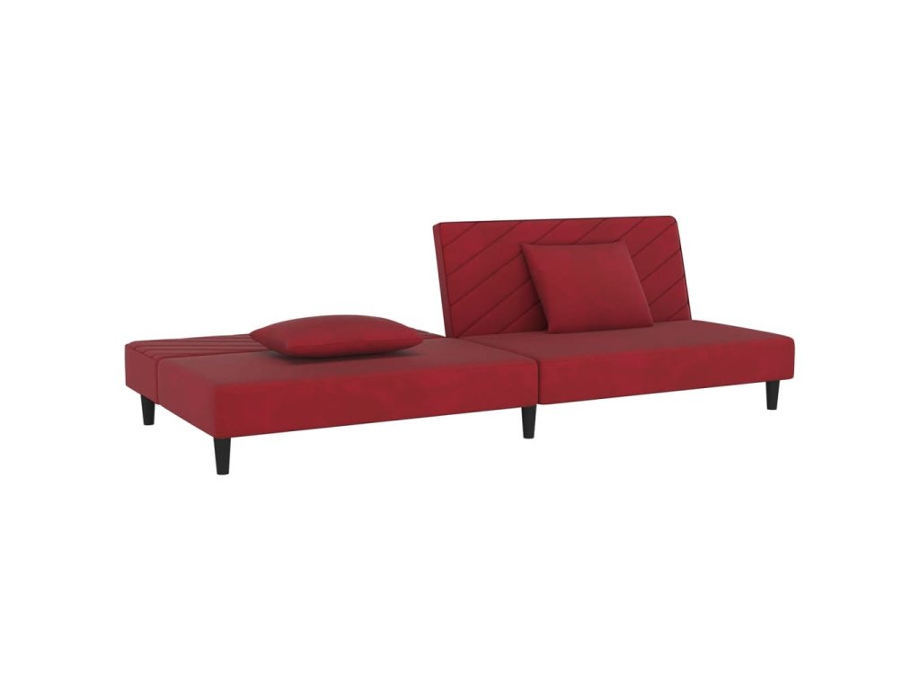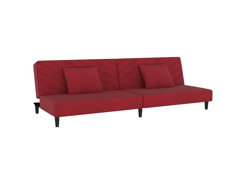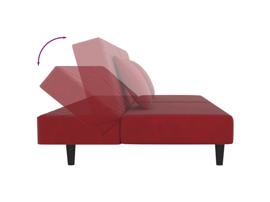 2místná rozkládací pohovka se 2 polštáři vínová samet 375914