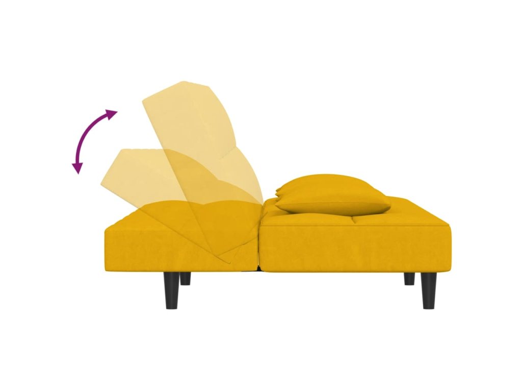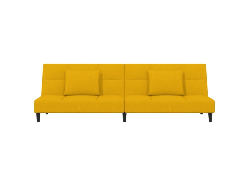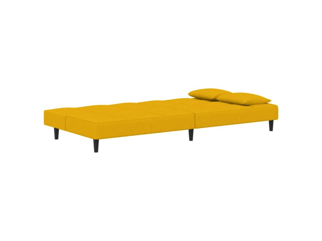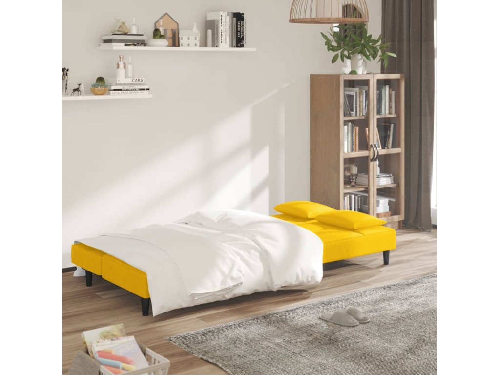 2místná rozkládací pohovka se 2 polštáři žlutá samet 375813