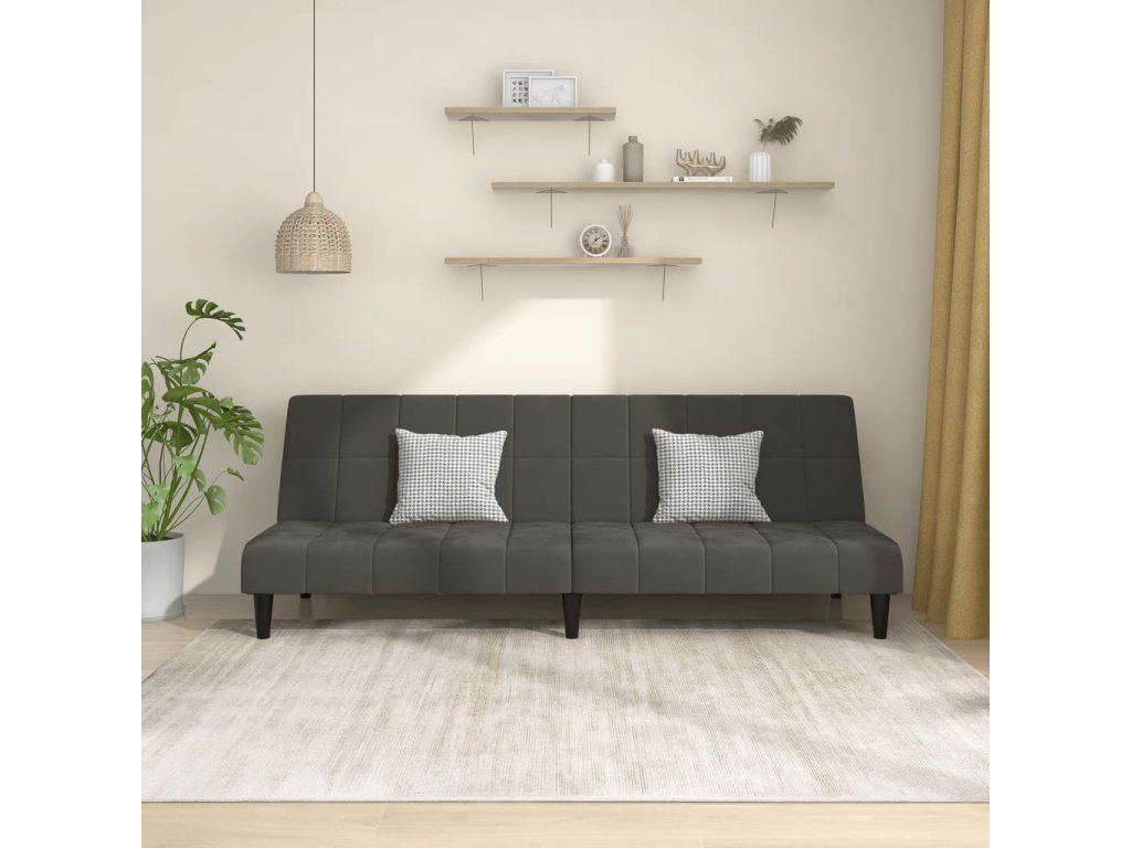 2místná rozkládací pohovka tmavě šedá samet 375842