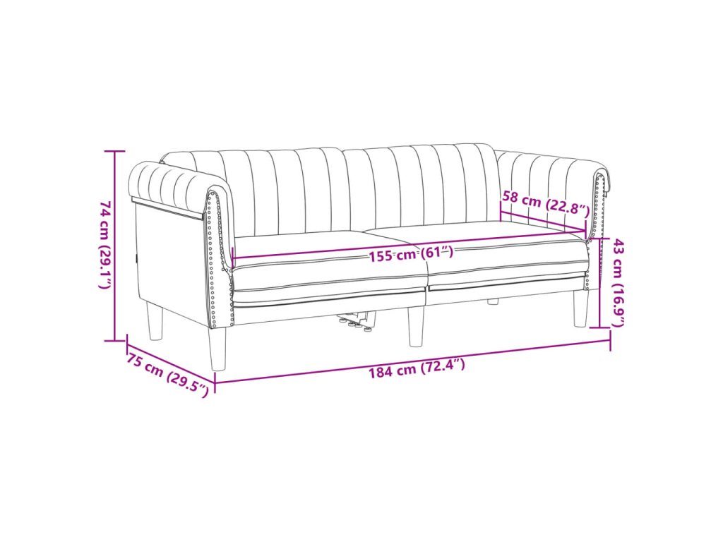 - Celkové rozměry: 182 x 77 x 74 cm (Š x H x V)