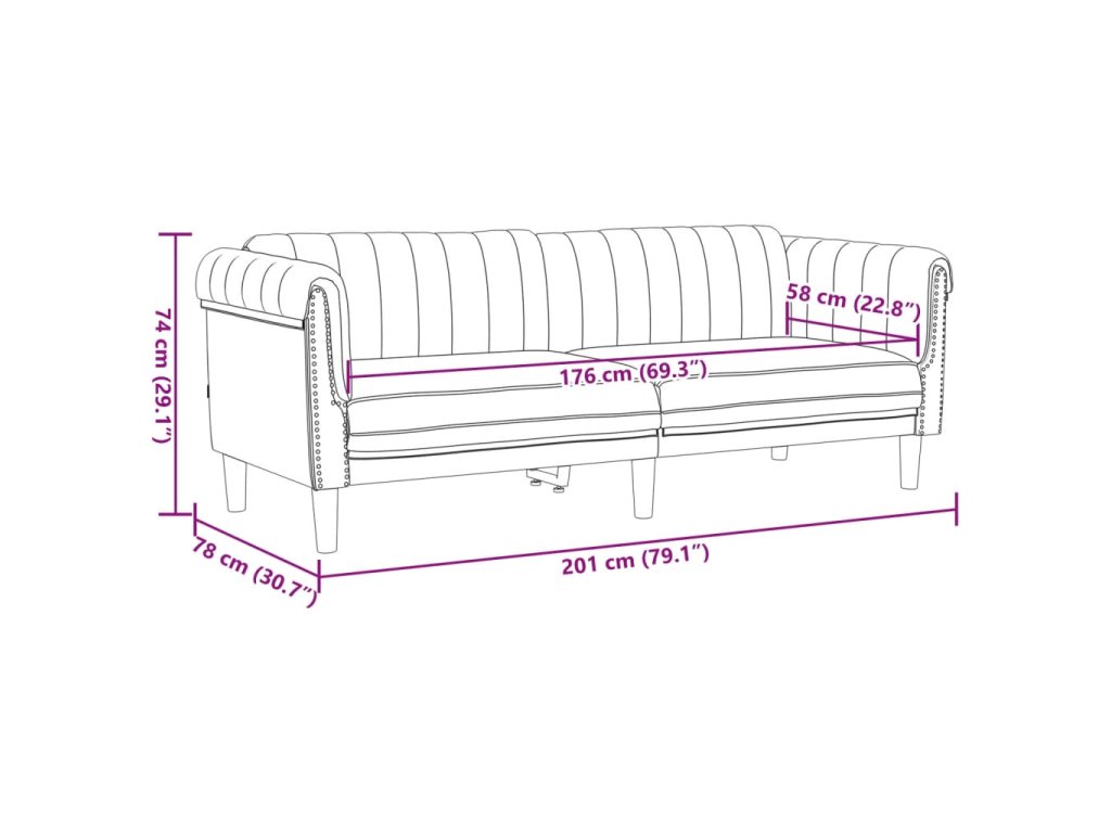 - Celkové rozměry: 203 x 77 x 74 cm (Š x H x V)