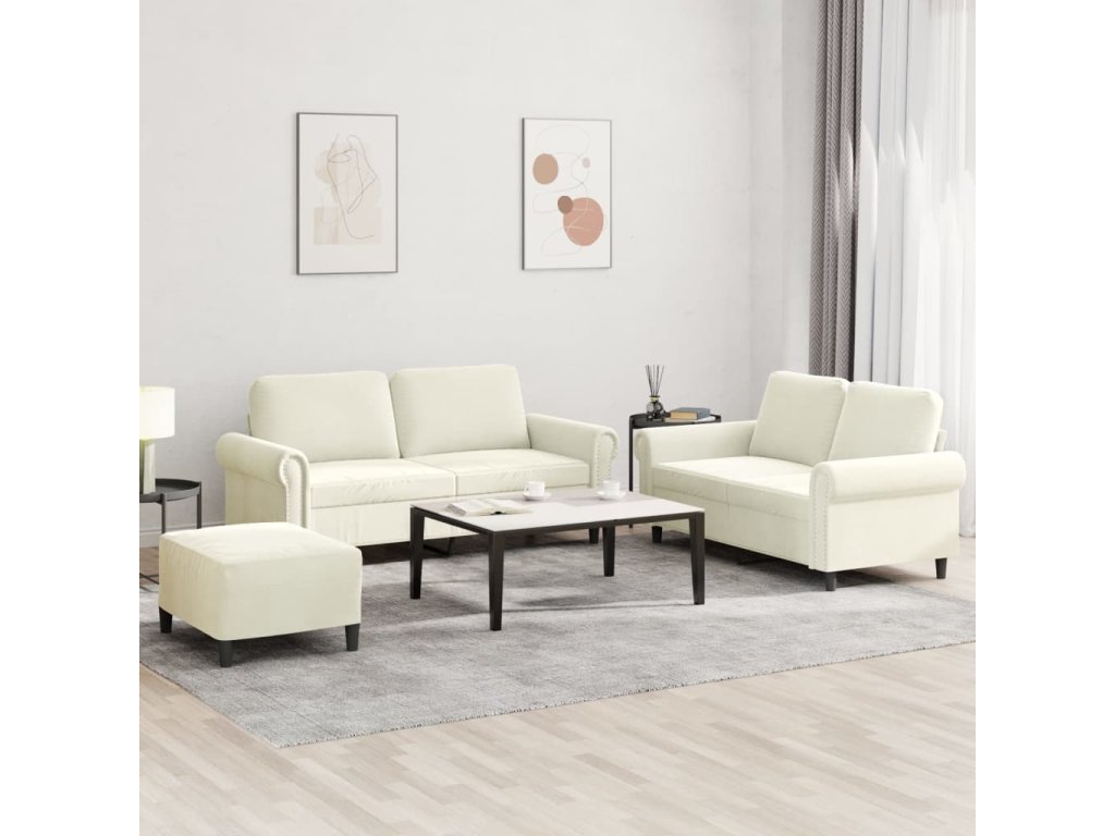 3dílná sedací souprava s poduškami krémová samet 3202228