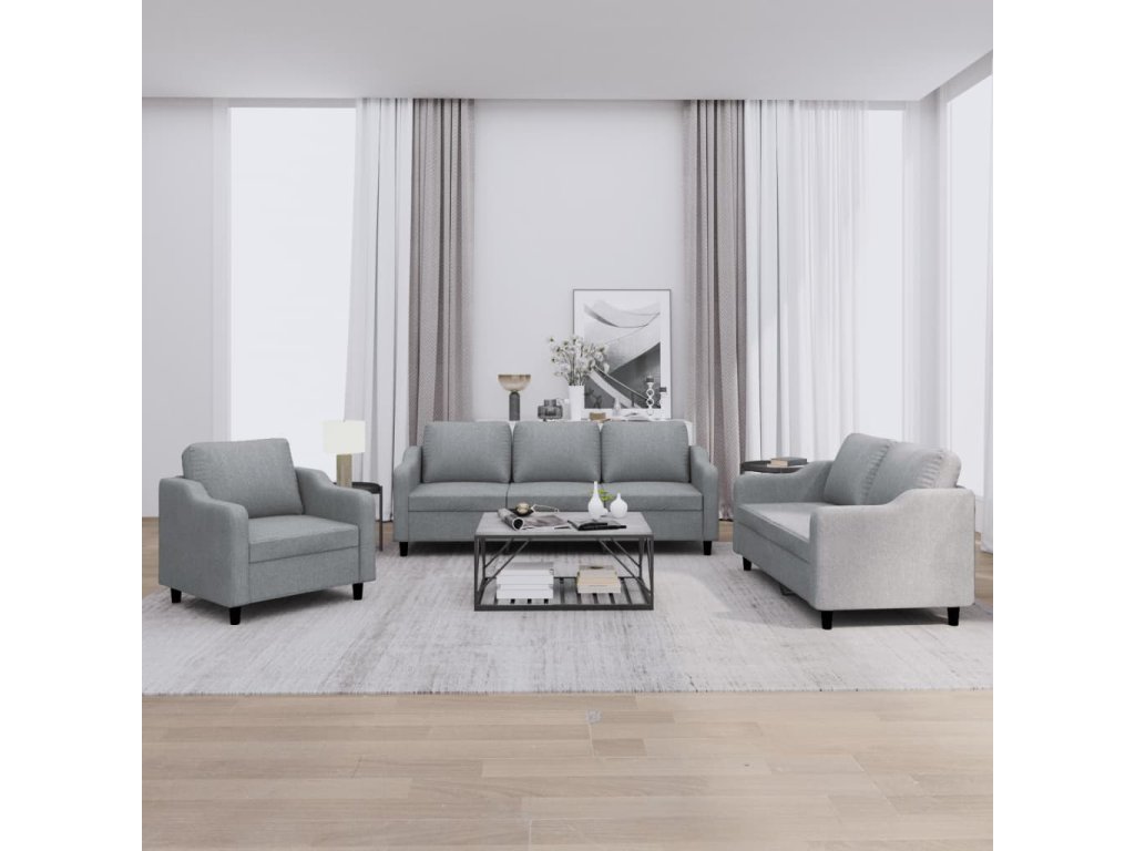 3dílná sedací souprava s poduškami světle šedá textil 3201770