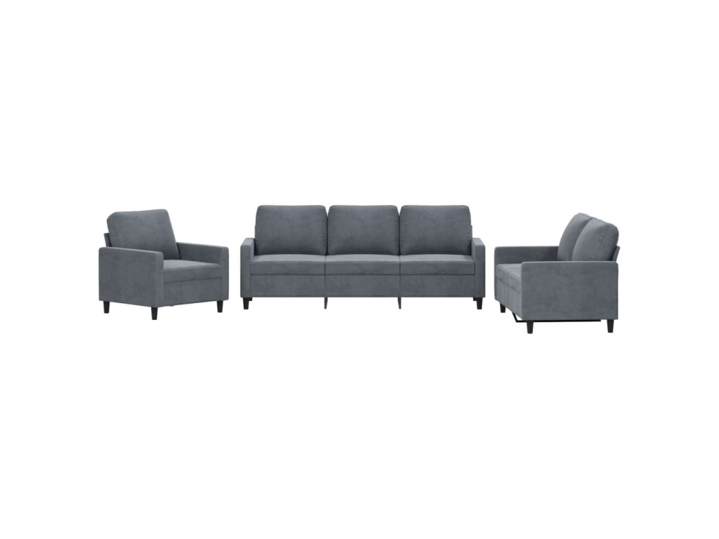 3dílná sedací souprava s poduškami tmavě šedá samet 3201477