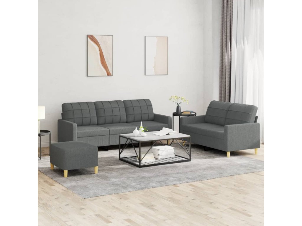 3dílná sedací souprava s poduškami tmavě šedá textil 3201315