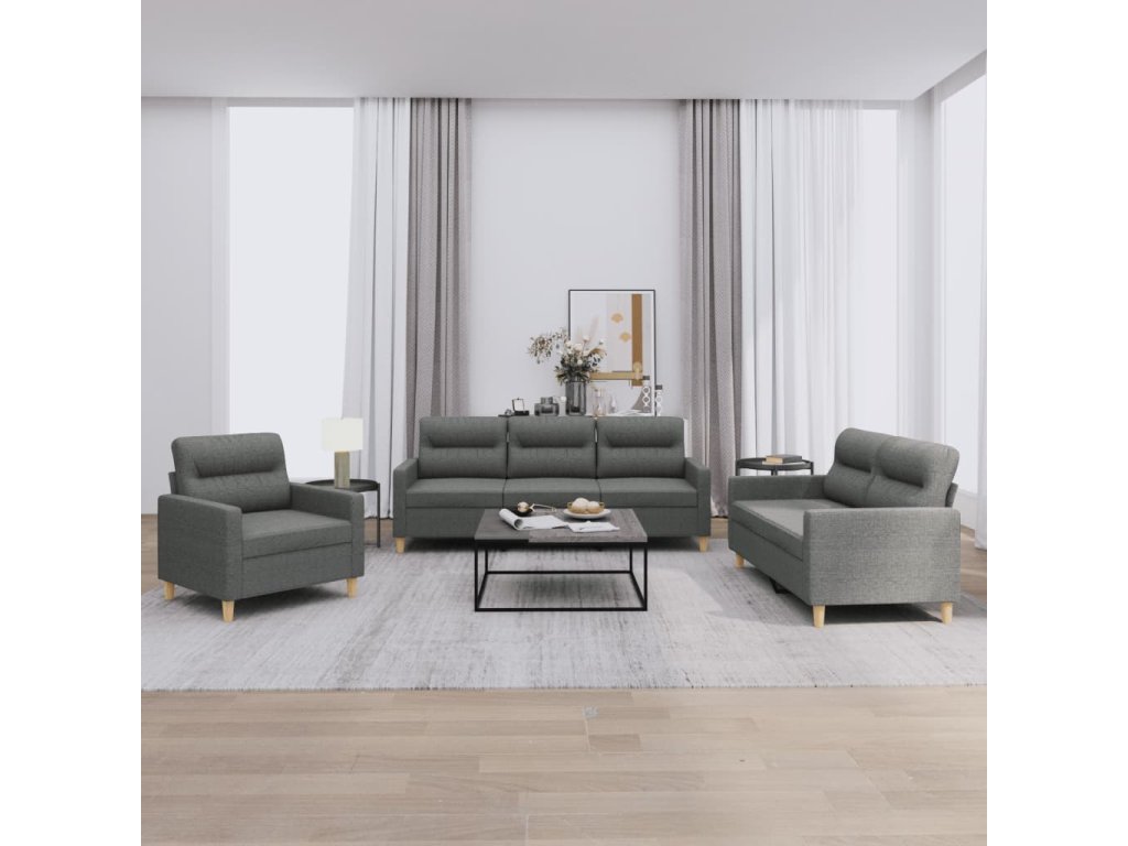 3dílná sedací souprava s poduškami tmavě šedá textil 3201537