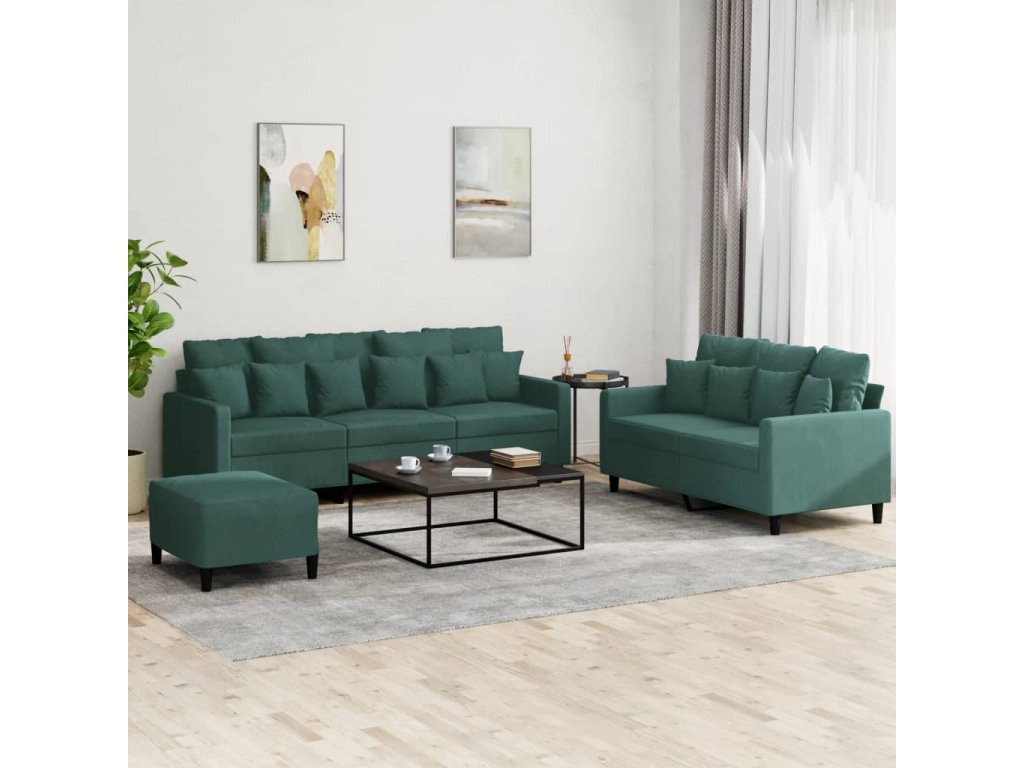 3dílná sedací souprava s poduškami tmavě zelená samet 3201732