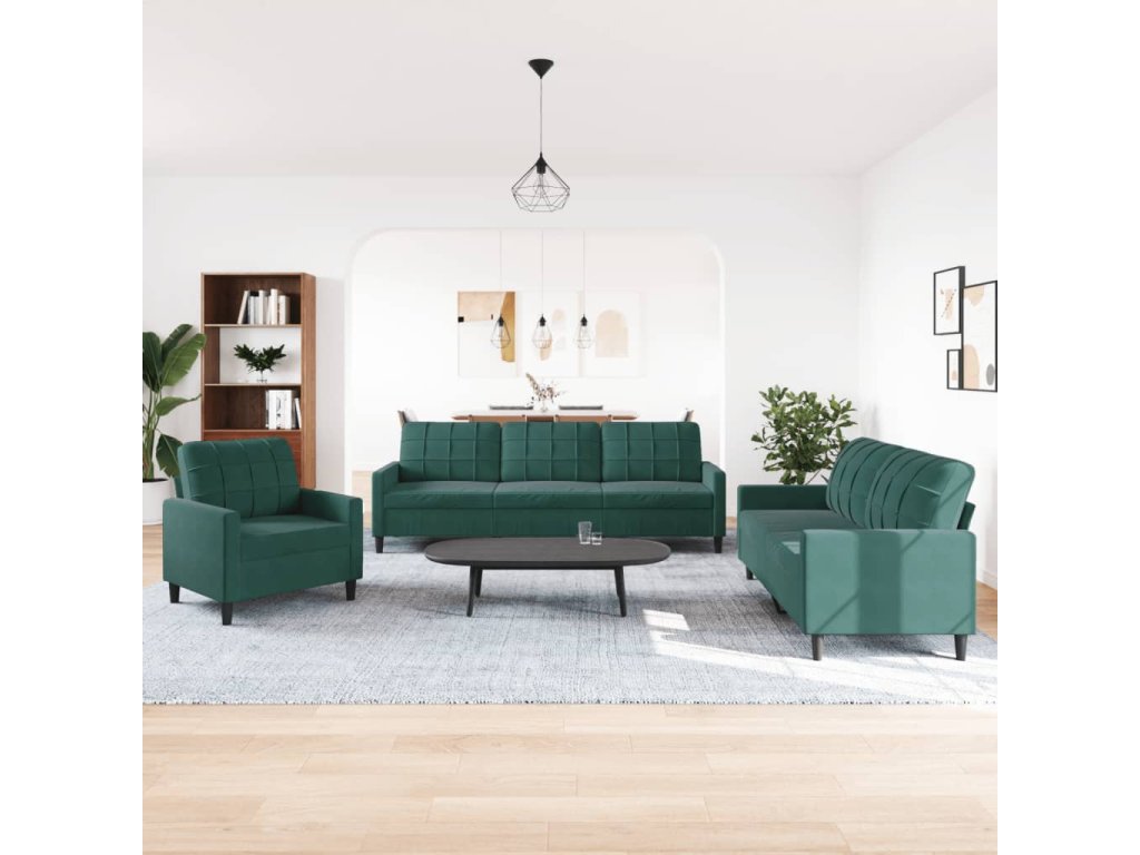 3dílná sedací souprava s poduškami tmavě zelená samet 3278433