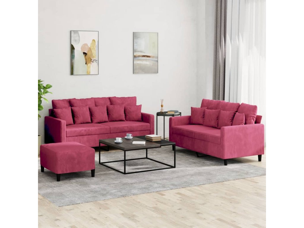 3dílná sedací souprava s poduškami vínová samet 3201714