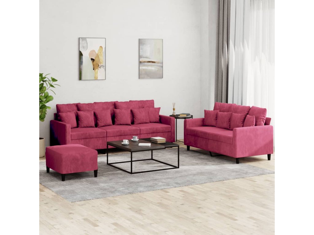 3dílná sedací souprava s poduškami vínová samet 3201734
