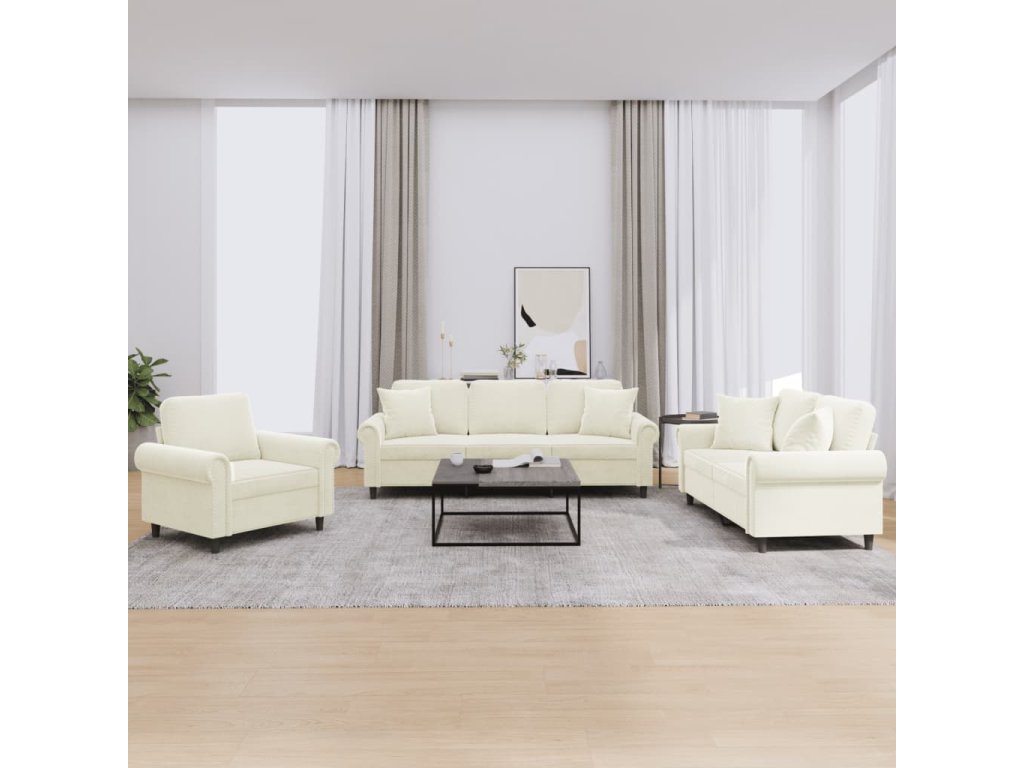 3dílná sedací souprava s polštáři krémová samet 3202198