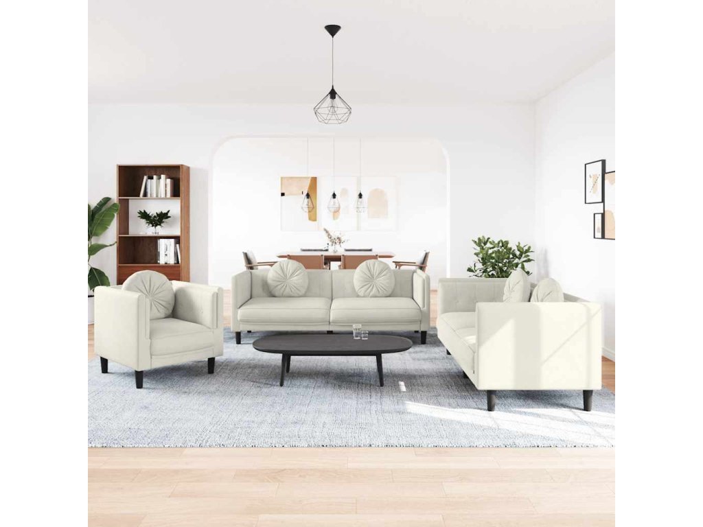 3dílná sedací souprava s polštáři krémová samet 3209254