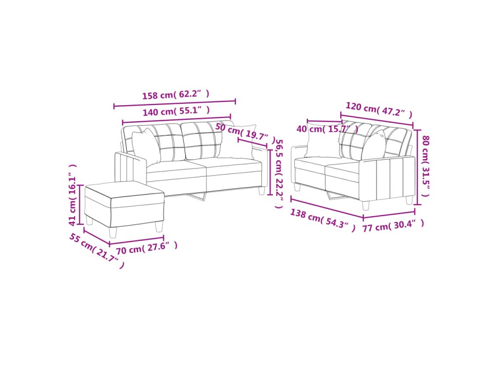 - Rozměry polštáře (každý): 40 x 40 cm (D x Š)
