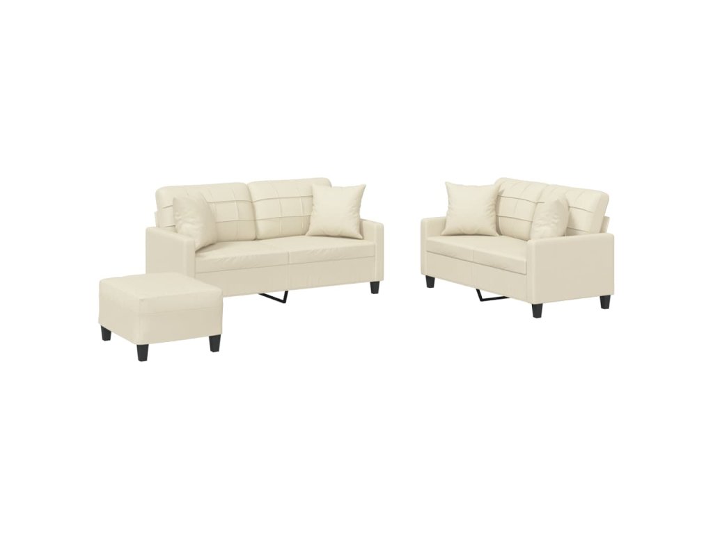 3dílná sedací souprava s polštáři krémová umělá kůže 3201374