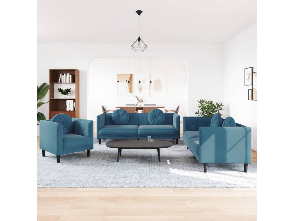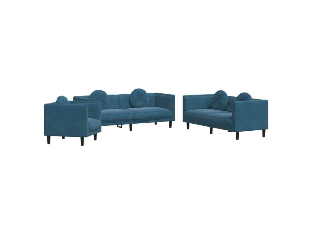 3dílná sedací souprava s polštáři modrá samet 3209255