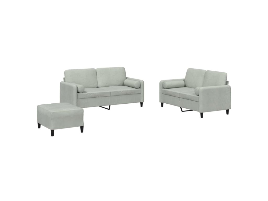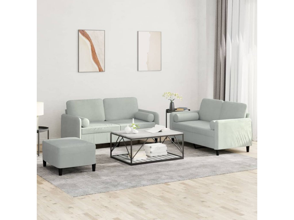3dílná sedací souprava s polštáři světle šedá samet 3202004