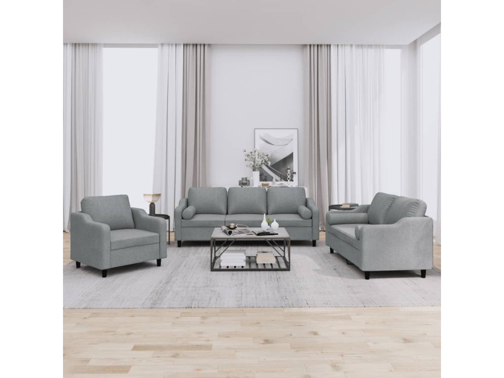 3dílná sedací souprava s polštáři světle šedá textil 3201786