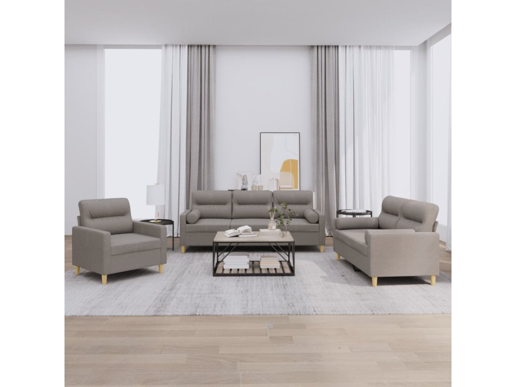 3dílná sedací souprava s polštáři taupe textil 3201559