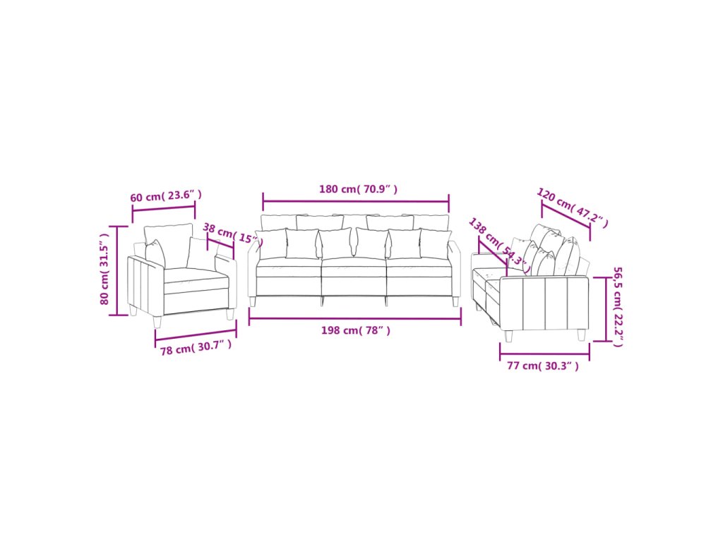3dílná sedací souprava s polštáři taupe textil 3201639
